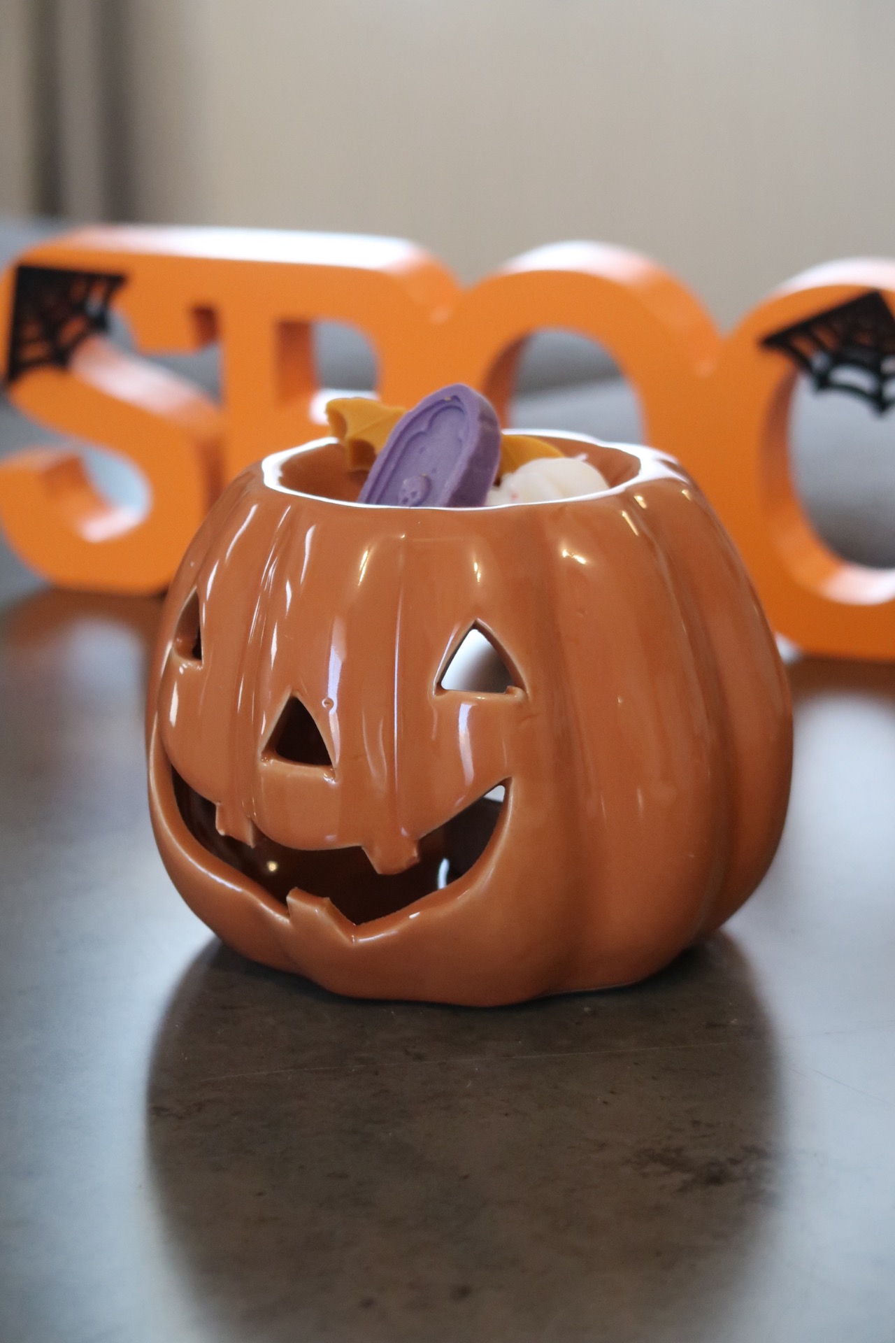 Dobd fel otthonod hangulatát ezzel a vidám, tök alakú kerámia párologtatóval! A klasszikus halloween töklámpás mintázat nemcsak dekorációként mutat jól, hanem illatviaszokkal használva kellemes aromát is áraszt.