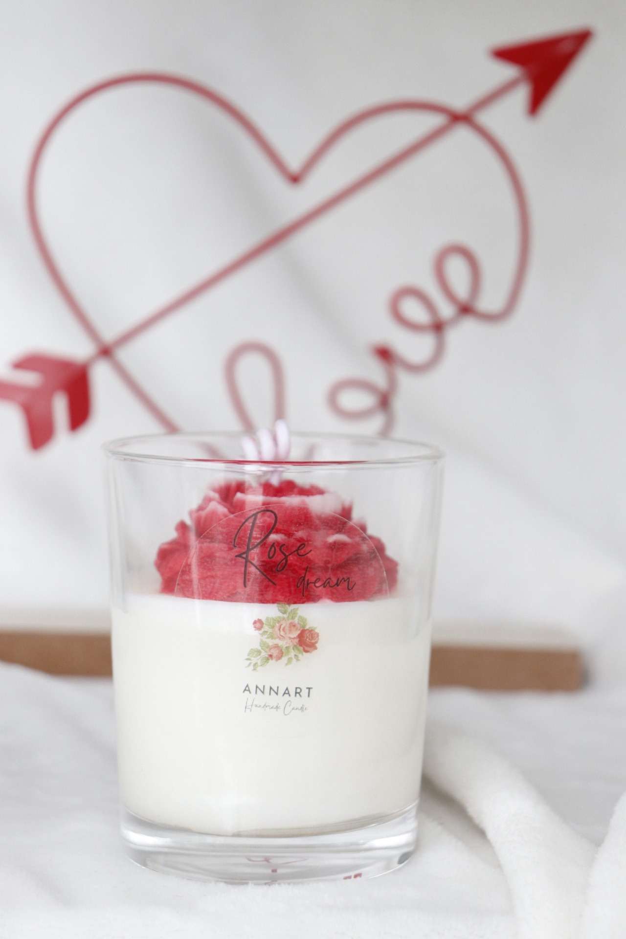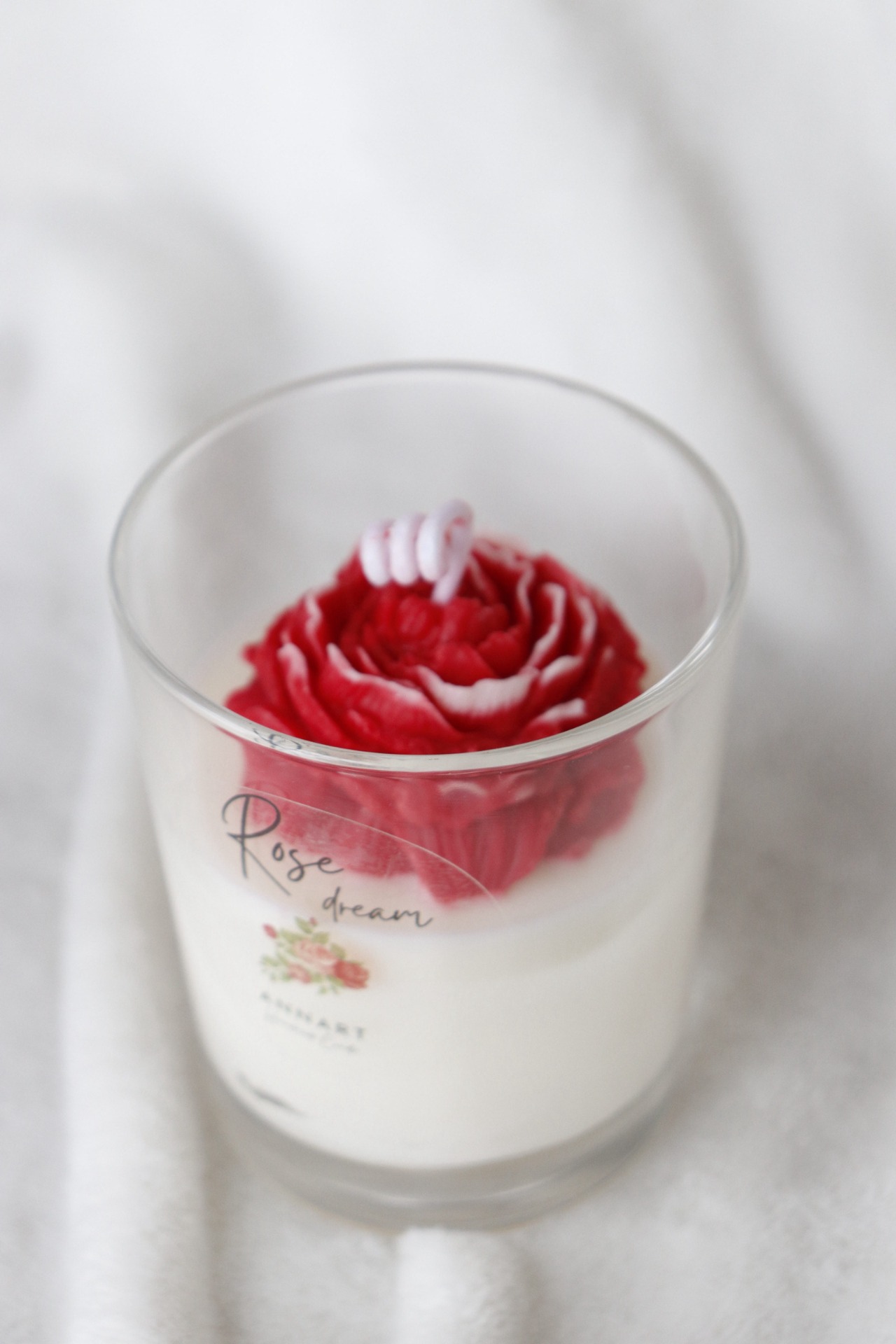 Ez a 220 grammos, 100% szójaviaszból készült gyertya letisztult, harmonikus megjelenésű: alsó rétege fehér, tetején pedig egy nagyobb, rózsa formájú dísz kapott helyet, amely igazán különlegessé és dekoratívvá teszi. Nemcsak illatával, hanem megjelenésével is a romantika megtestesítője.